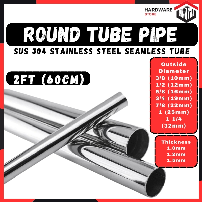 304 Stainless Steel Round Tube Seamless Chrome Finish (2FT) HARDWARE